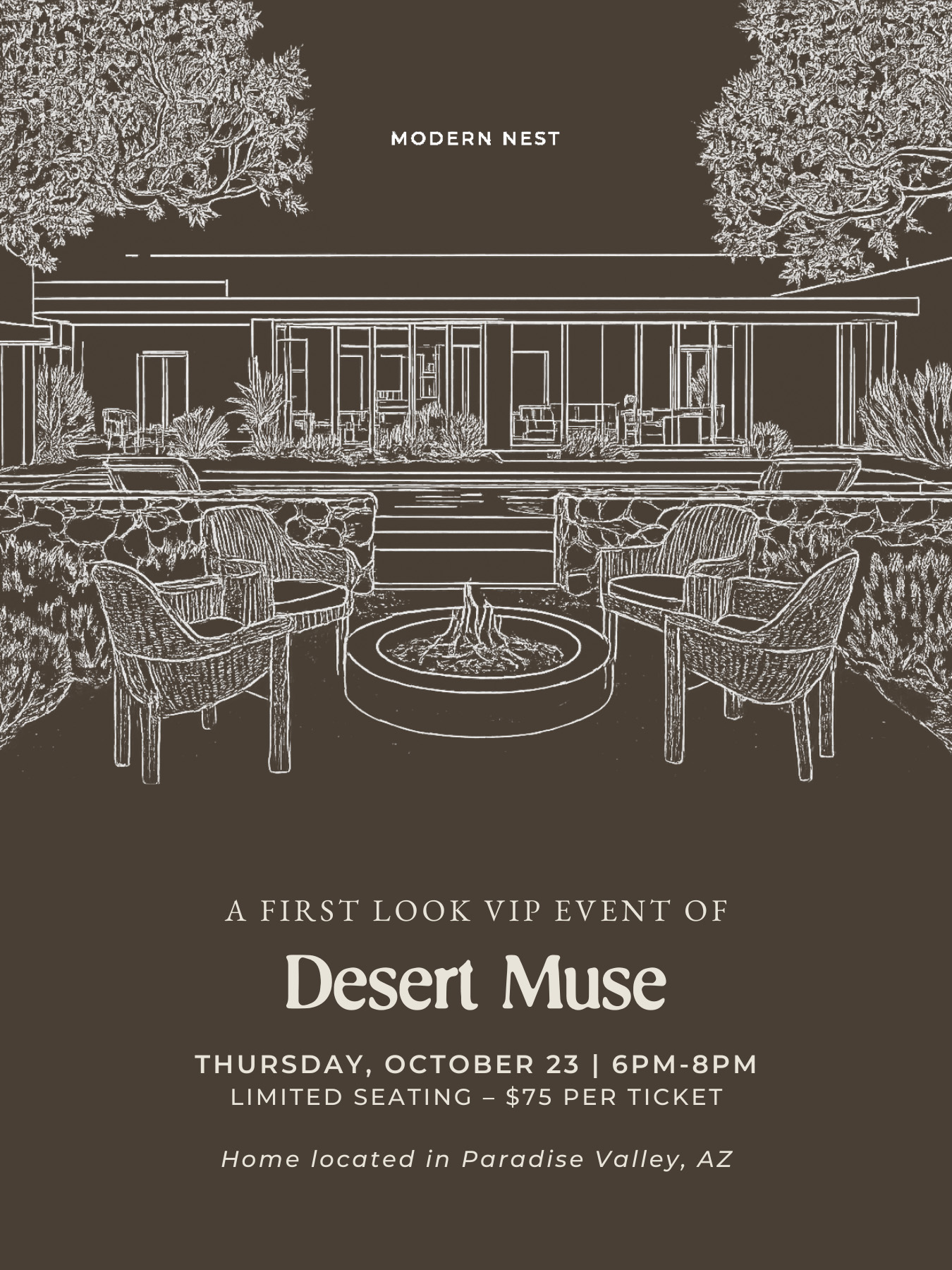The VIP First Look: The People Behind Desert Muse will take place on Thursday, Oct. 23, from 6-8pm. This is a ticketed event featuring food, beverages, and a panel discussion with the team behind Desert Muse.